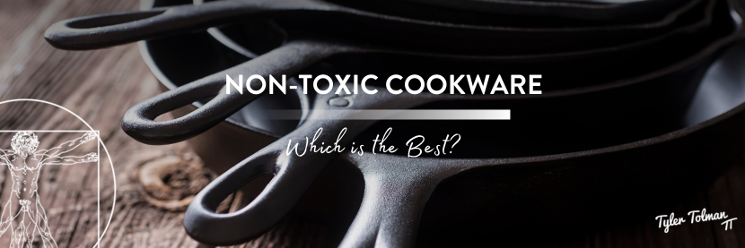 Ceramic, cast iron, and stainless steel are all good materials to look for when buying non-toxic cookware. My favourite is ceramic. It’s an inert, non-toxic, non-leaching type of material. Cast iron is great because there is a low level of iron exchanges (not the actual metal from the pan sticking to your food! Something more subtle). Glass is another great option, especially for baking. Cook with any of these and you’ll be winning!